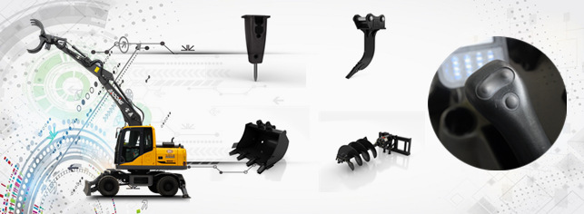 BD95S配置了双辅具管理控制系统,该系统针对铲斗、破碎锤、抓木器等属具设置了不同的选项,驾驶员通过手指操作就可以调节和控制,后期可加装机械快换和电子液压快换,这使得操作员可以快速轻松地更换属具、轻松添加或更改其他属具。