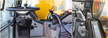 新一代宽大驾驶室设计,采用简单明了的仪表盘。此外开关面板易于理解操作方便.驾驶视野佳,从而增加的工作的安全性.丰富的座椅调节功能,满足佳的驾驶姿势.配置大功率冷暖空调,合理安置出风口,进一步追求舒适度。